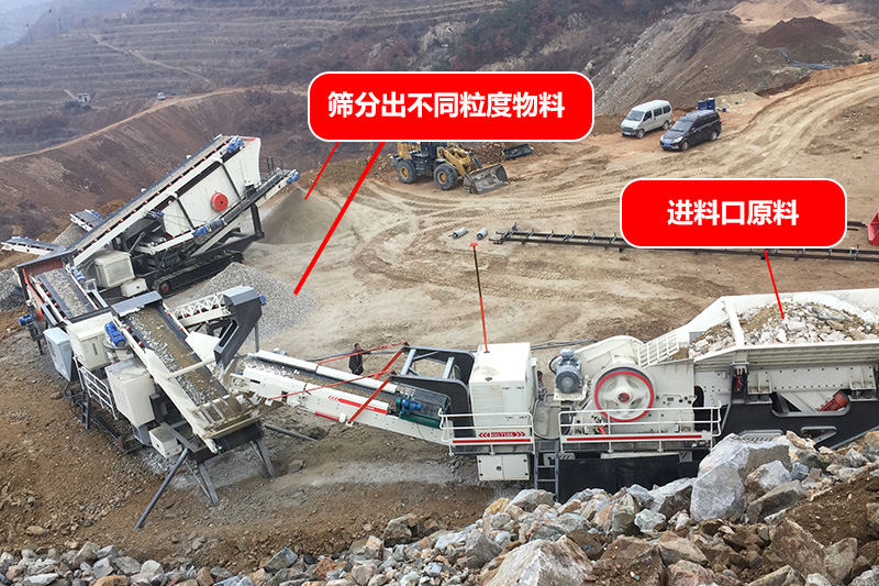 二合一指的是兩臺(tái)車(chē)為一套:第一臺(tái)車(chē)上放給料機(jī)+鄂破(粗破),第二臺(tái)車(chē)上放反擊破+篩子(細(xì)破),注:軟料(反擊破、重錘破),硬料(鄂破、圓錐破)